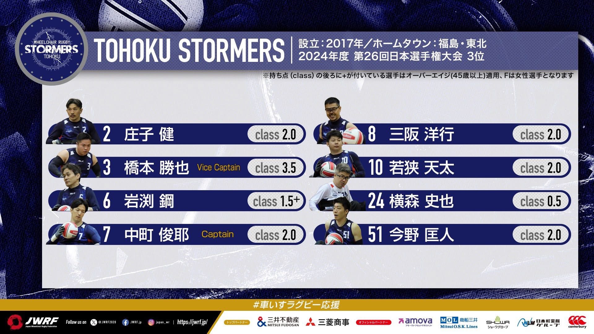 2位 | TOHOKU STORMERS | 福島・東北 | 獲得 |